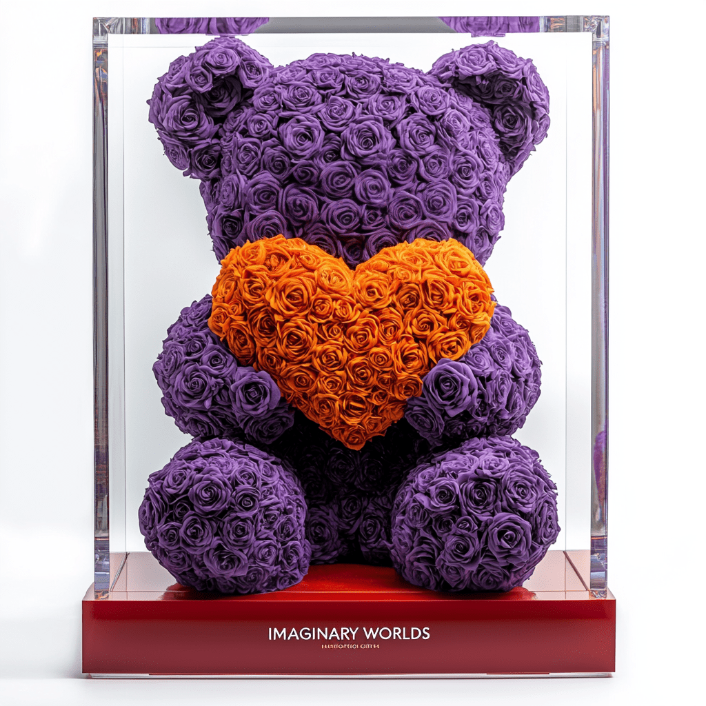 The Rose Bear with Heart Collection by Imaginary Worlds is a breathtaking blend of elegance, romance, and expert floral craftsmanship. Each 3D-printed bear holds a beautifully sculpted heart, symbolizing eternal love, warmth, and companionship. Adorned with forever roses, this exquisite piece is encased in a luxury acrylic display case, making it a perfect keepsake or heartfelt gift.